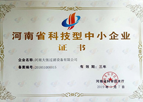 2020年9月9日——河南大張過濾設(shè)備有限公司榮獲“高新技術(shù)企業(yè)”證書
